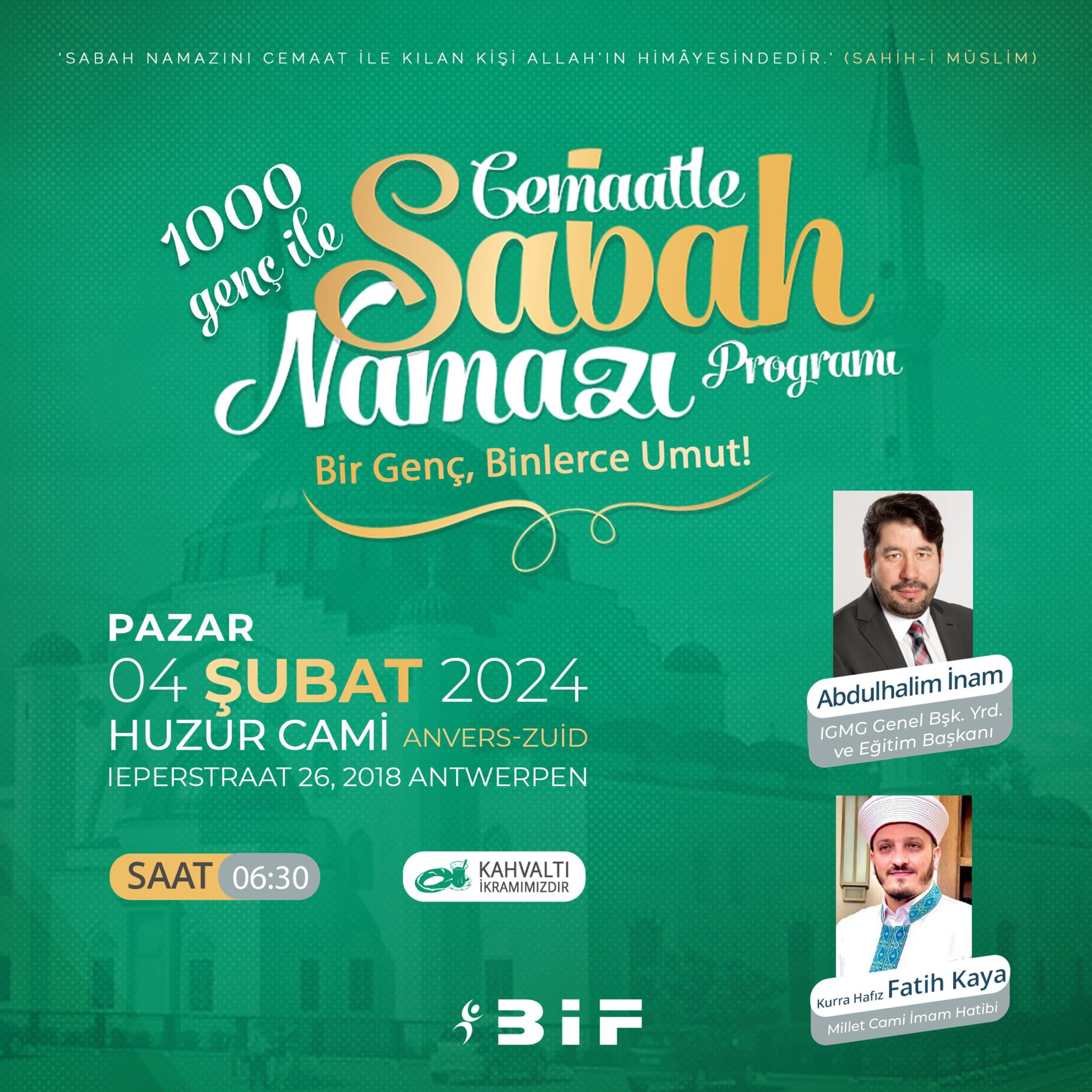 IGMG Genel Bşk. Yrd. ve Eğitim Başkanı Abdulhalim İnam ile Beştepe Millet Cami Baş İmam Hatibi Kurra Hafız Fatih Kaya’nın teşrifiyle; 1000 genç ile Cemaatle Sabah Namazı Programında buluşuyoruz!