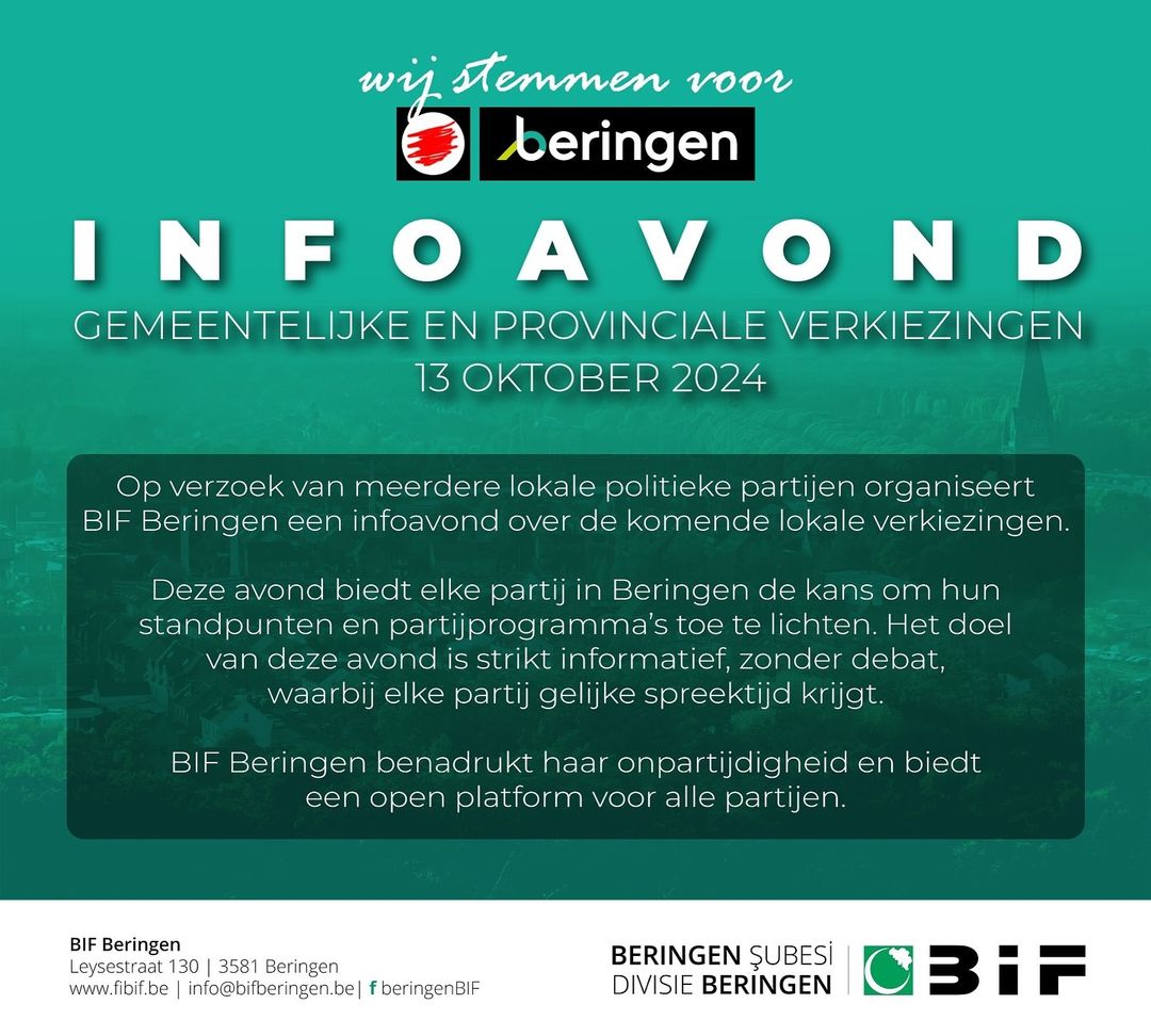 Çeşitli yerel partilerin ve cemaatimizin yoğun talepleri üzerine, 5 Ekim 2024 Cumartesi günü saat 20:30’da BIF Beringen olarak yerel siyasi partilerin seçim programlarını ve görüşlerini üyelerimize aktarabilecekleri bir bilgi gecesi düzenliyoruz.