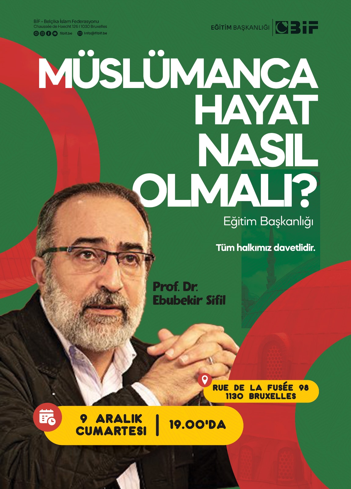 Konuşmacılığını Prof. Dr. Ebubekir Sifil'in üstlendiği "Müslümanca Hayat Nasıl Olmalı?" konulu seminerimize tüm halkımız davetlidir.